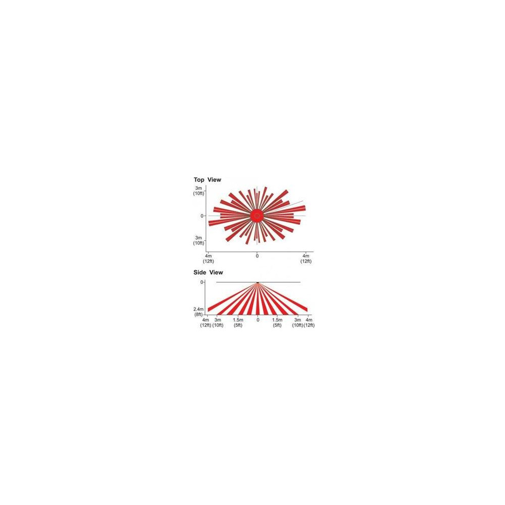 - Pokrytí: 7 x 6 m při výšce 2,4m / 11 x 6 m při výšce 3,7m, 360°